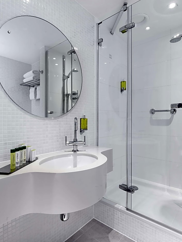 This room features a Jensen twin bed (31 in each) and a flat-screen TV. The tiled bathroom has a shower and underfloor heating.